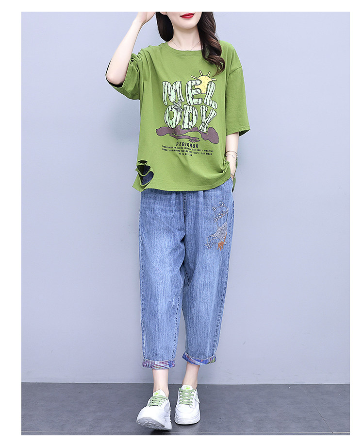 休闲时尚套装女士夏装小个子搭配一整套微胖遮肉显瘦减龄牛仔套装